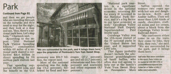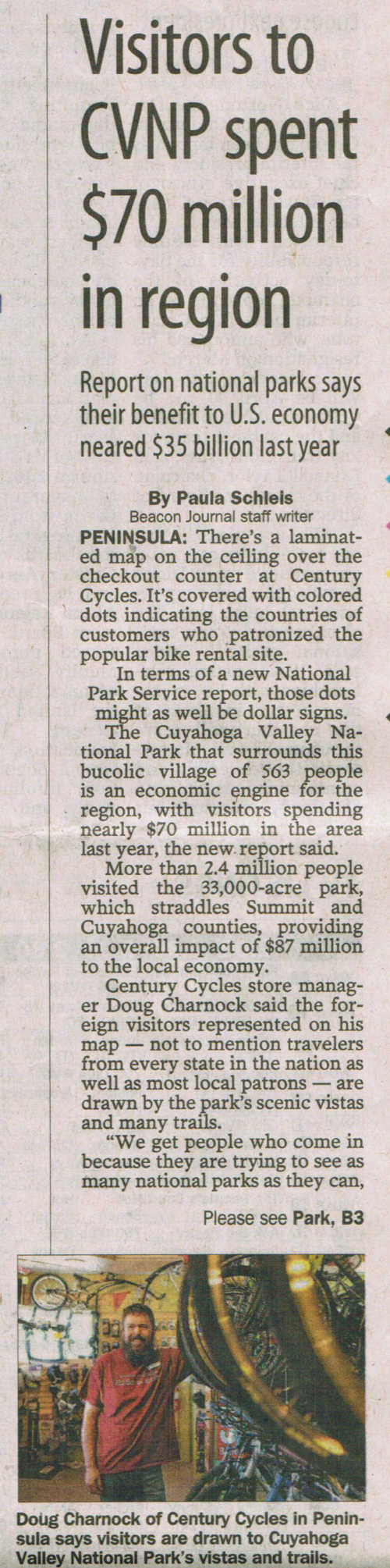 Thanks to the Akron Beacon Journal for stopping by our Peninsula store to talk to Store Manager Doug Charnock for their article on the economic impact of the National Parks.