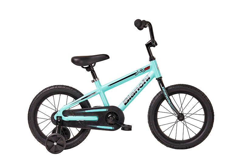 Bianchi's XR16 is your young rider's first step to achieving cycling greatness. Adventure awaits them aboard the high-quality aluminum frame painted in Bianchi's signature Celeste. The 16-inch aluminum wheels with grippy tires are light and durable and the included training wheels make learning to ride safe and easy. A single speed and coaster brake keep the focus on fun.