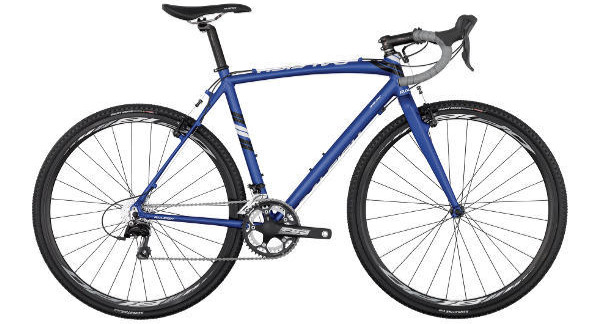 Cyclocross bicycles are a special type of road bike designed to be raced on a mixed surface course (combination of pavement, unpaved trails, gravel, grass). They have a drop handlebar like regular road bikes, but the tires are a littler wider for more off-road traction, and they have a different style of brake that helps to prevent mud buildup in the frame. Cyclocross bicycles are sometimes called 'cross bikes or cx bikes for short.