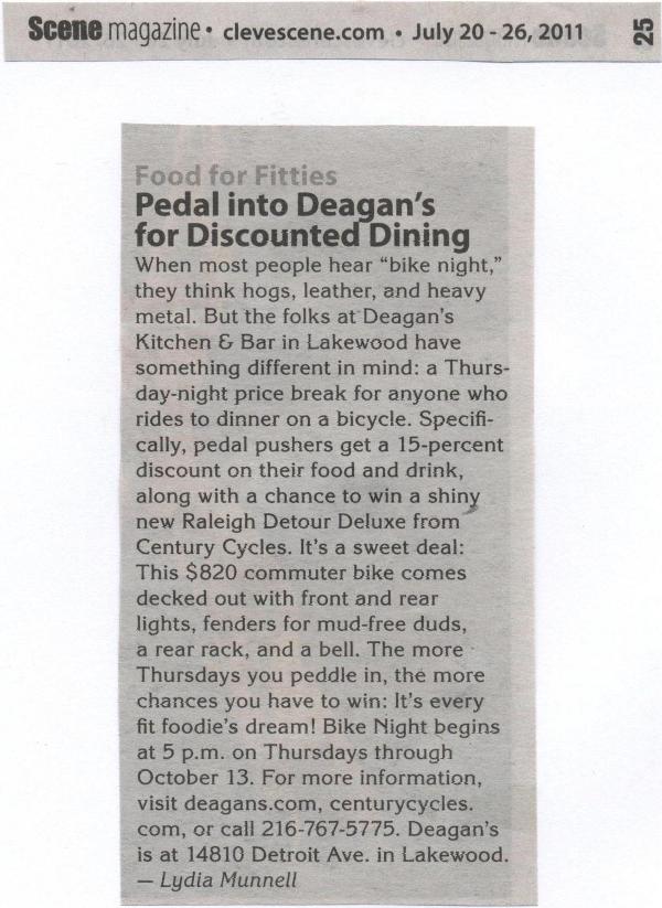 Cleveland Scene: Pedal into Deagan's for Discounted Dining