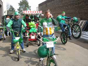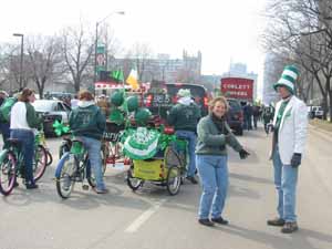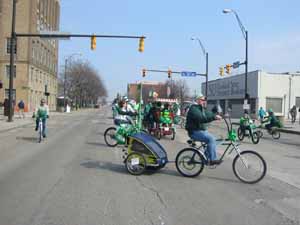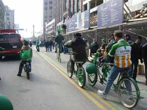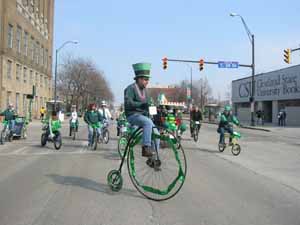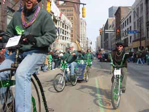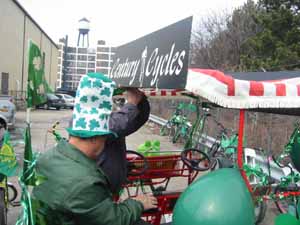 A tradition for many years for the city of Cleveland and for Century Cycles, this year's St. Patrick's Day Parade offered sunny weather, lots of fun bikes, and good times for everyone. To top it off, we were awarded the second place prize in the Novelty Unit division by the parade committee!