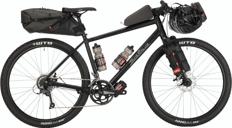 A gravel bike outfitted for bicycle touring using common bikepacking accessories
