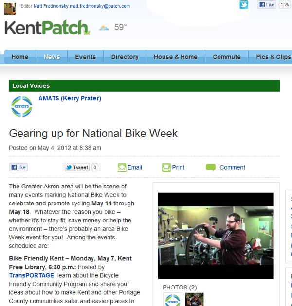 Thanks to the Kent Patch for mentioning our participation in the Biking 101 class in Twinsburg in their coverage of National Bike Week: