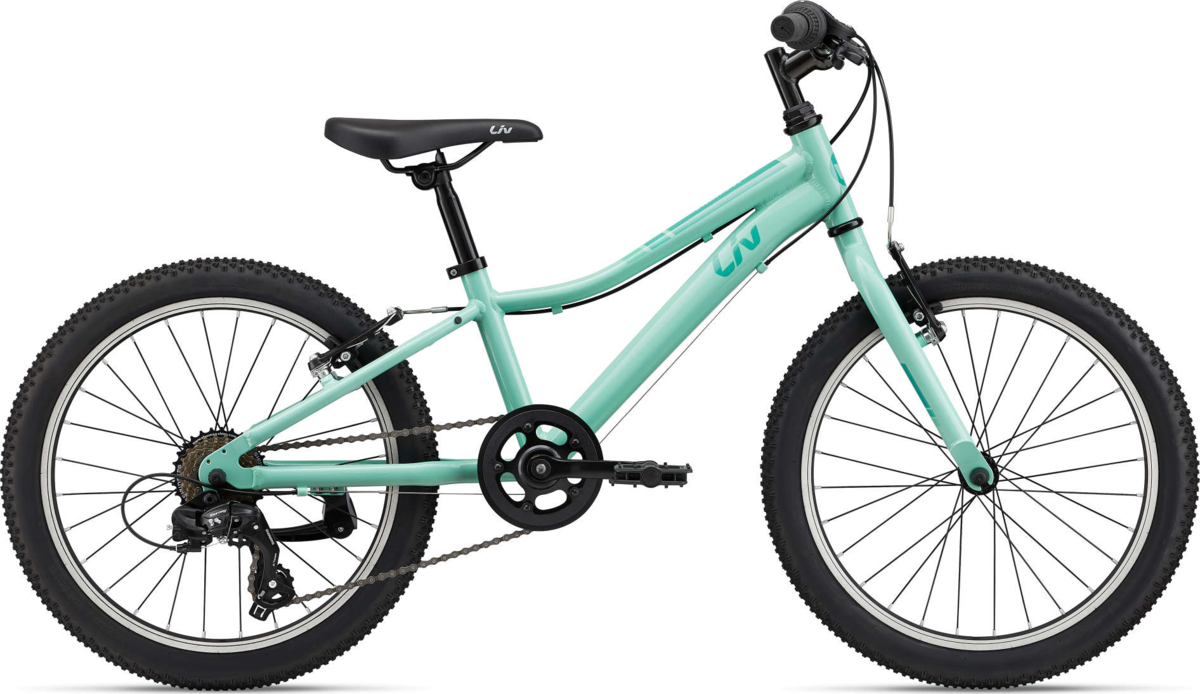 A comfortable, lightweight ALUXX-Grade Aluminum frame design with an upright riding position and twist shifters inspire girls to learn to mountain bike.