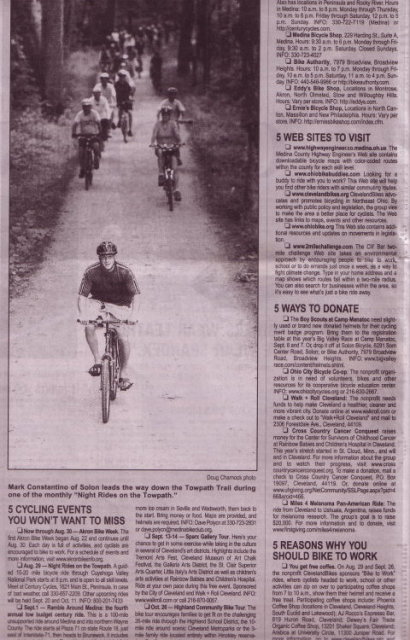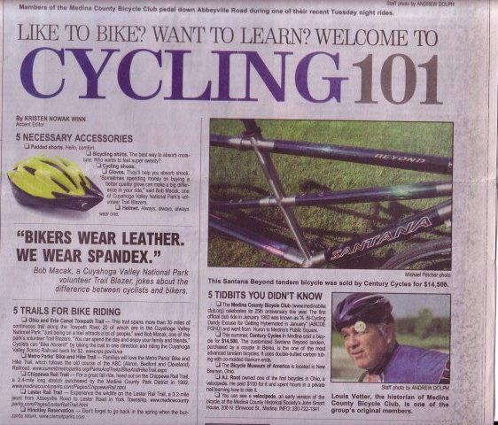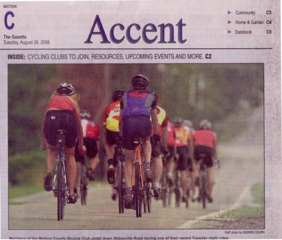 o The Medina County Bicycle Club (www.medinabikeclub.org) celebrates its 25th anniversary this year. The first official club ride in January 1983 was known as “A Bi-Cycling Dandy Excuse for Getting Hybernated in January” (ABCDE FGHIJ) and went from Huron to Medina’s Public Square.