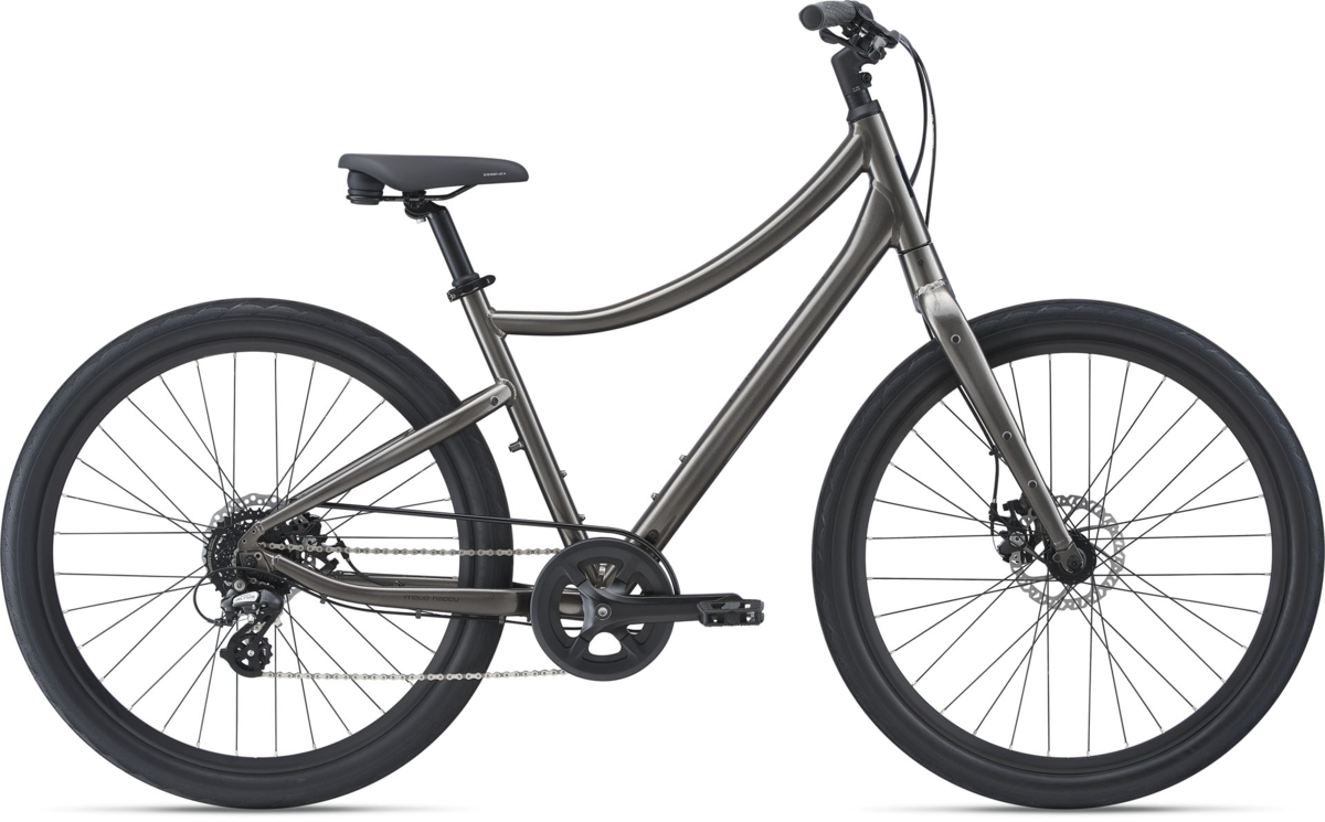 Everything you need to tap into the pure and simple joy of riding a bike. With its comfortable rider position, 8-speed gearing and wide, smooth-rolling tires, Vida will get you spinning with a smile on your face. It has disc brakes for smooth stopping power, plus a comfortable saddle and grips.