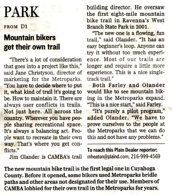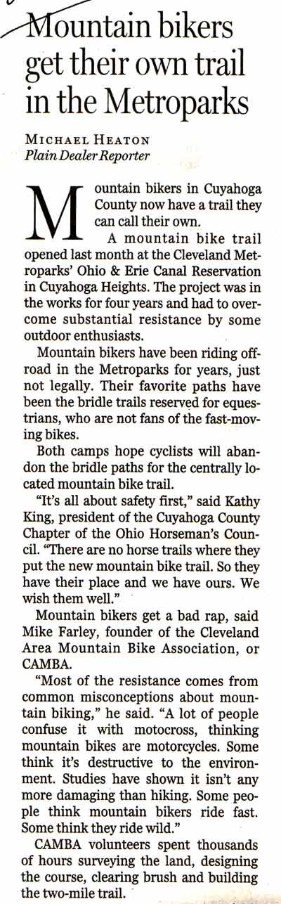 Mountain bikers get a bad rap, said Mike Farley, founder of the Cleveland Area Mountain Association, or CAMBA.