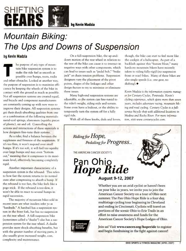 From the "Shifting Gears" column in the April 2007 issue of Ohio Sports & Fitness Magazine.