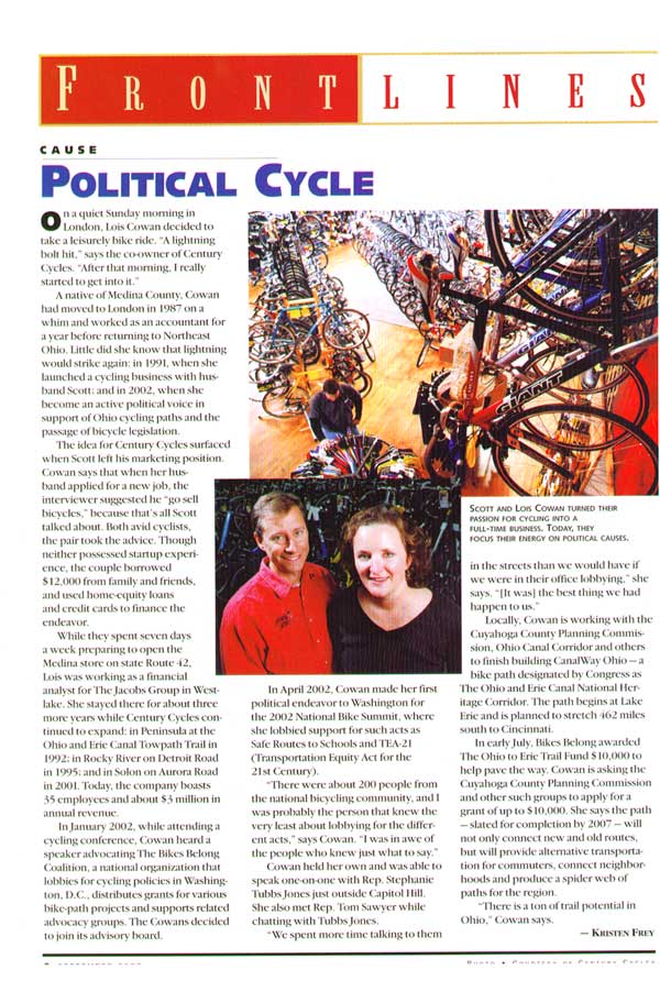 The March 1992 issue of Bicycle Business Journal featured the opening of the first Century Cycles store in Medina: