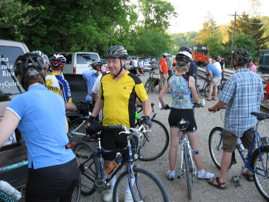 One of the first hot days of our summer turned into a nice warm evening for a bike ride, with a very good turnout--we lost count at 120 people!