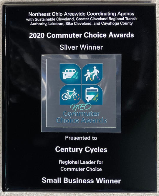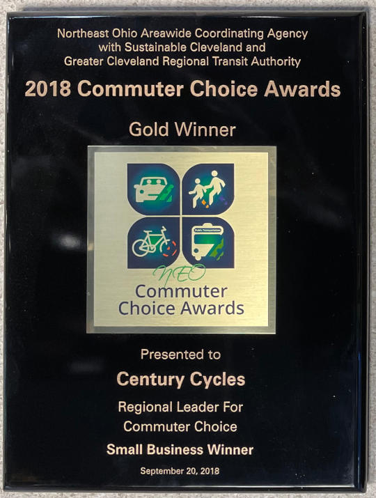 We are honored to have won the Commuter Choice Award in the Small Business category several times, presented by the Northeast Ohio Areawide Coordinating Agency (NOACA) in association with various community partners. The Commuter Choice Awards recognize local businesses for their commitment to promoting and engaging in alternative modes of transporatation, such as bicycling, public transit, and walking.