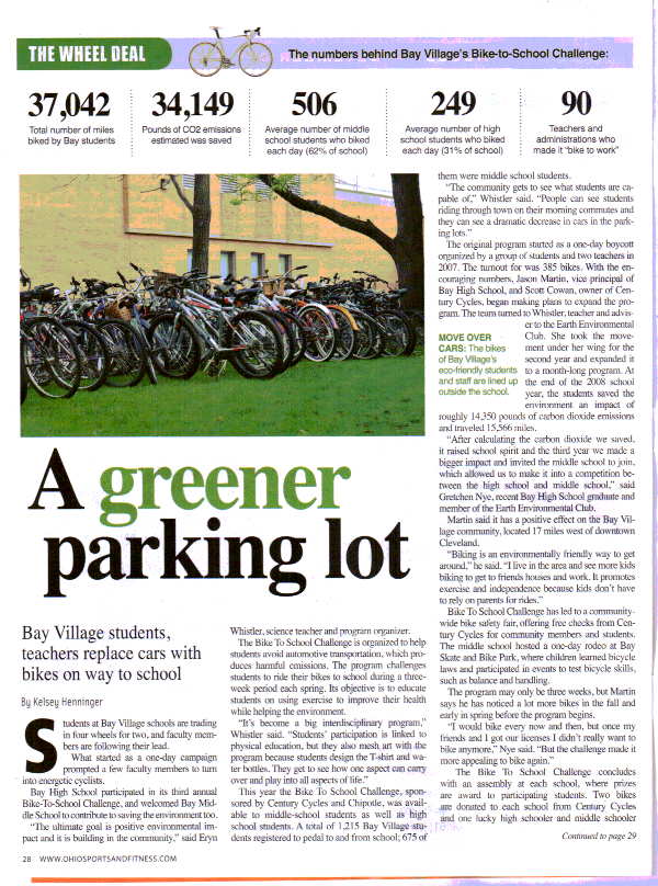 The year the Bike To School Challenge, sponsored by Century Cycles and Chipotle, was available to middle-school students as well as high school students. A total of 1,215 Bay Village students registered to pedal to and from school; 675 of them were middle school students.