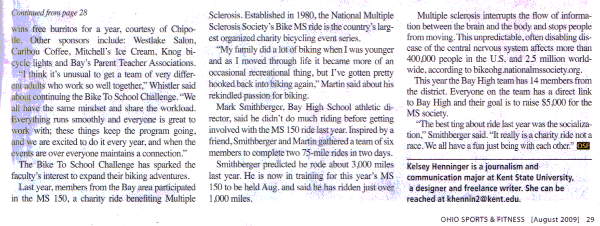 Mark Smithberger, Bay High School athletic director, said he didn't do much riding before getting involved with the MS 150 ride last year. Inspired by a friend, Smithberger and Martin gathered a team of six members to complete the two 75-miles rides in two days.