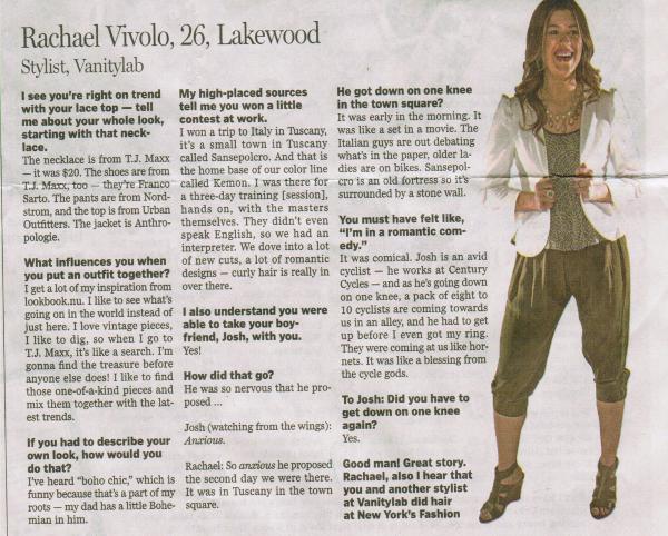 Good man! Great story. Rachael, also I hear that you and another stylist at Vanitylab did hair at New York's Fashion Week in February.