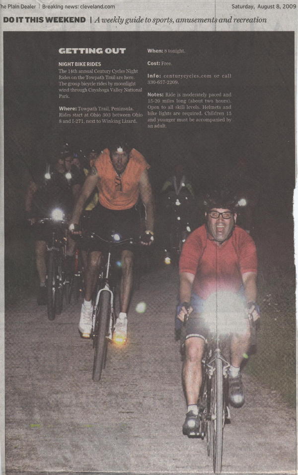 The 14th Annual Century Cycles Night Rides on the Towpath Trail are here. The group bicycle rides by moonlight wind through the Cuyahoga Valley National Park.