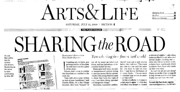 "Cars will often come within an inch of your handlebars," said Charles Hicks, 60, a Bay Village bicyclist. He's been "buzzed," or cut off, by many an infuriated driver, and has had strings of obscenities hurled his way.