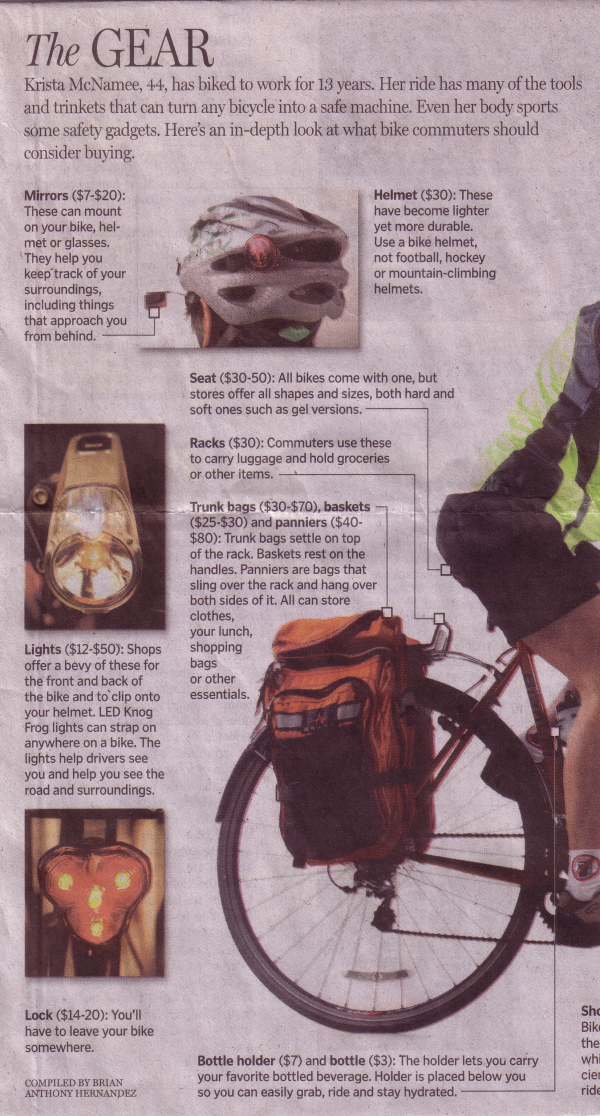 Bicyclists, especially novices, should map out a safe course before they roll out. "The route you take in a car isn't the same one you want to take on your bike," said Krista McNamee of Century Cycles. "Choose more residential-type streets to make your trip safer."