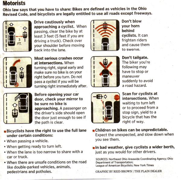 So can't we all just get along? Check out our list of tips on page E4 to help drivers and bicyclists learn to play nice and share the road.