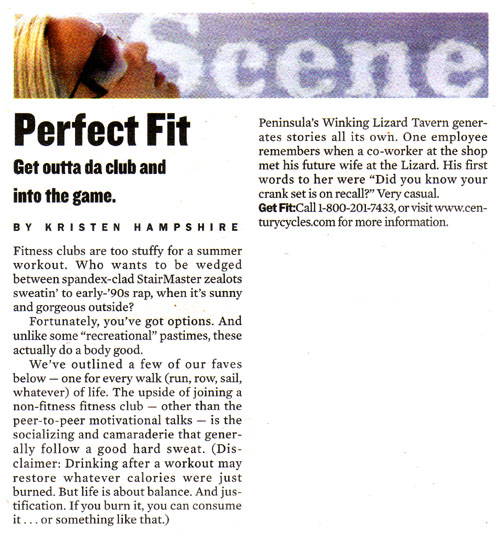 Get Fit: Call 1-330-657-2209, or visit www.centurycycles.com for more information.