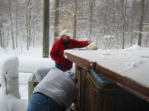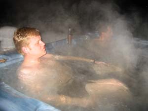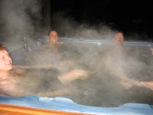 ![]() Petch and Don B make sure the hot tub is warming up. |