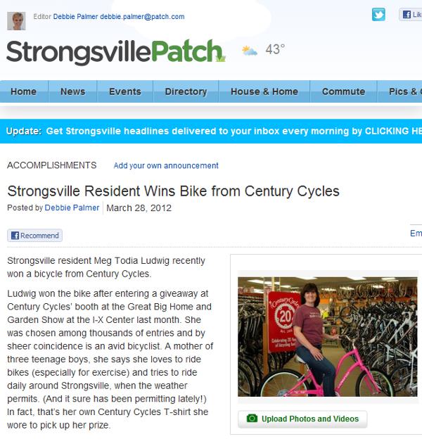 Strongsville Patch: Strongsville Residient Wins Bike from Century Cycles