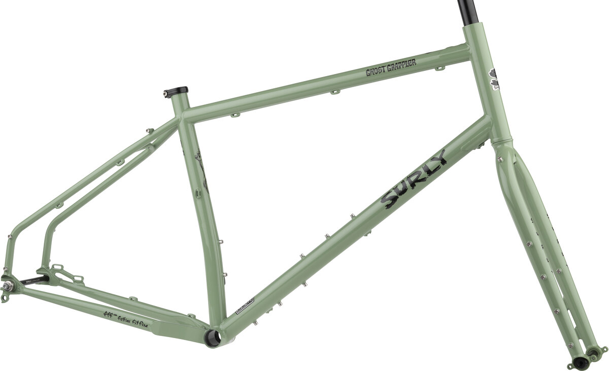 The Grappler is Surly's dedicated drop-bar trail bike. With mountain geo designed around a comfortable, confident drop-bar hand position, it's lively and responsive on single track, double track, and other degraded surfaces. Ready to haul essential gear for all-day dirt rides and quick bikepacking excursions, captured thru-axles front and rear provide ideal stiffness and handling. Built around 27.5" wheels and compatible with internally geared hub and single-speed setups, Surly's tried-and-true Gnot-Boost spacing allows riders to run 142mm or 148mm rear hubs.