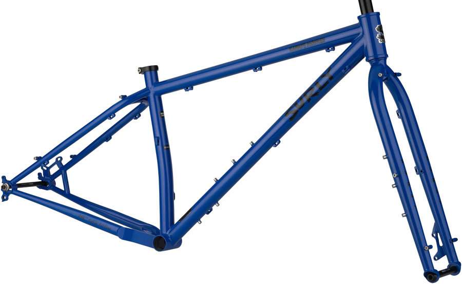 - 100% Surly 4130 chromoly steel frame and fork; double-butted main triangle and 44mm headtube