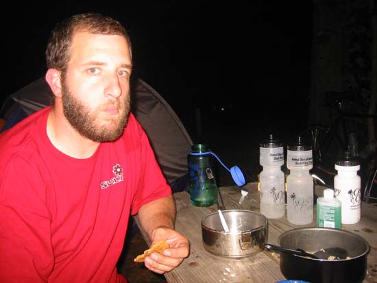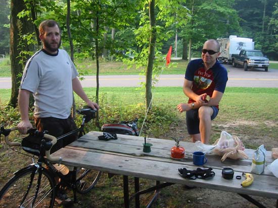 Starting after the store closed at 6:00pm Saturday, the group rode from Peninsula to West Branch State Park campground outside of Ravenna, about 25 miles away, using this route. After a meal of ramen and a good night's rest in their tents, they rode back Sunday morning to open up the store by noon.