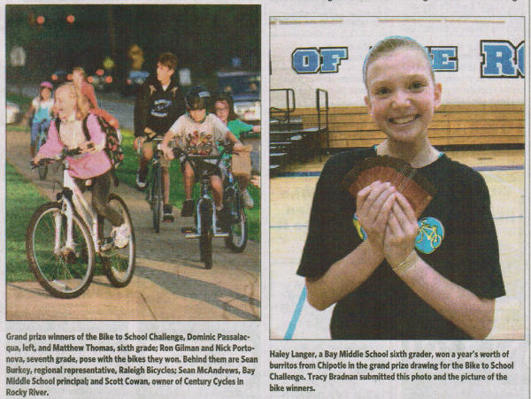 Scott Cowan, Bay alumnus and owner of Century Cycles, jumped in and helped the school create a full-blown Bike to School challenge the next year. This was the third year for the challenge at the high school, and the second year at the middle school. Organizers hope it will install a healthy habit in the students.
