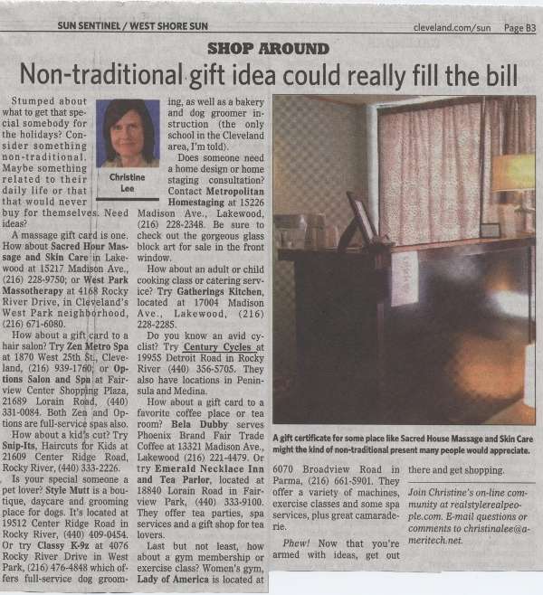 Thank you to Christine Lee for mentioning us in her Shop Around column in the December 17, 2009 edition of the West Shore Sun: