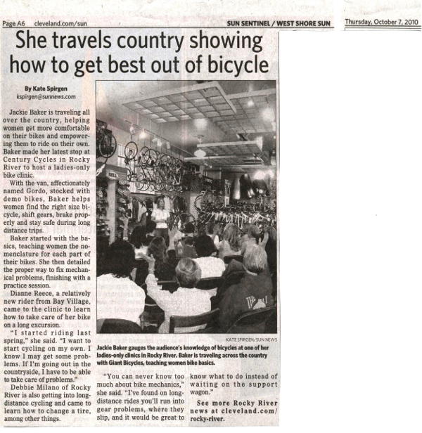 Jackie Baker is traveling all over the country, helping women get more comfortable on their bikes and empowering them to ride on their own. Baker made her latest stop at Century Cycles in Rocky River to host a ladies-only bike clinic.