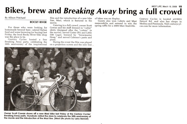 Century Cycles hosted a free Breaking Away party, celebrating the 30th anniversary of the inspirational film and the introduction of a new bike line, Masi, which is featured in the movie.